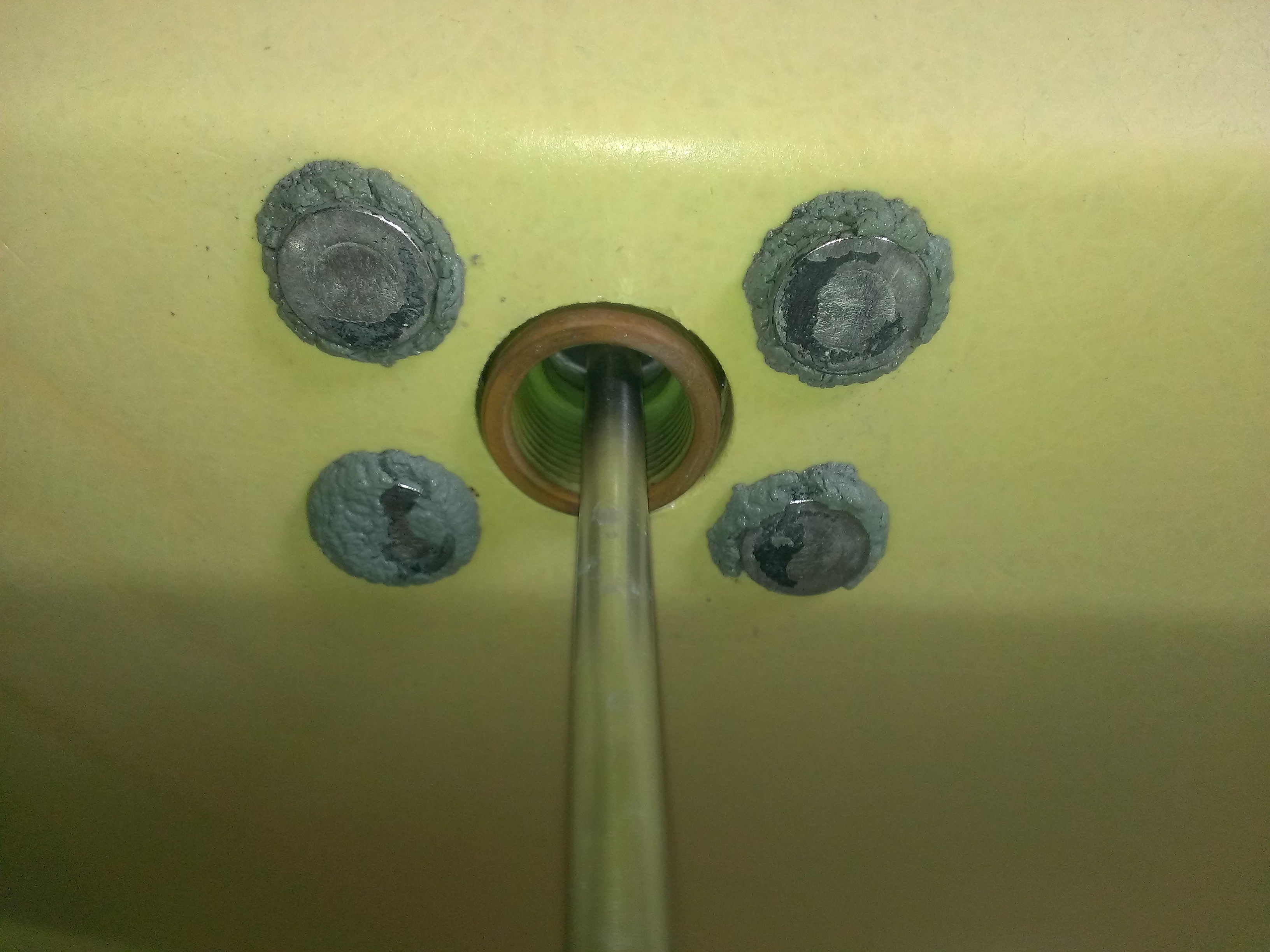 貯湯槽内の温度センサーを固定しているボルトに被せてあるボルトキャップが劣化して剥がれています。 高温だと耐久性がよくないようです。