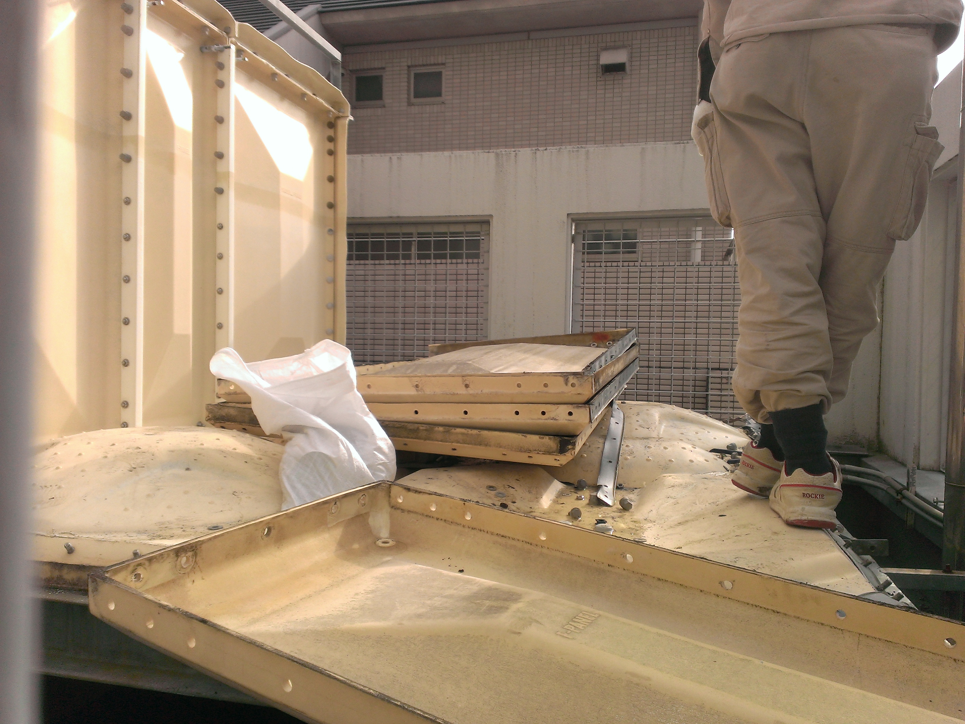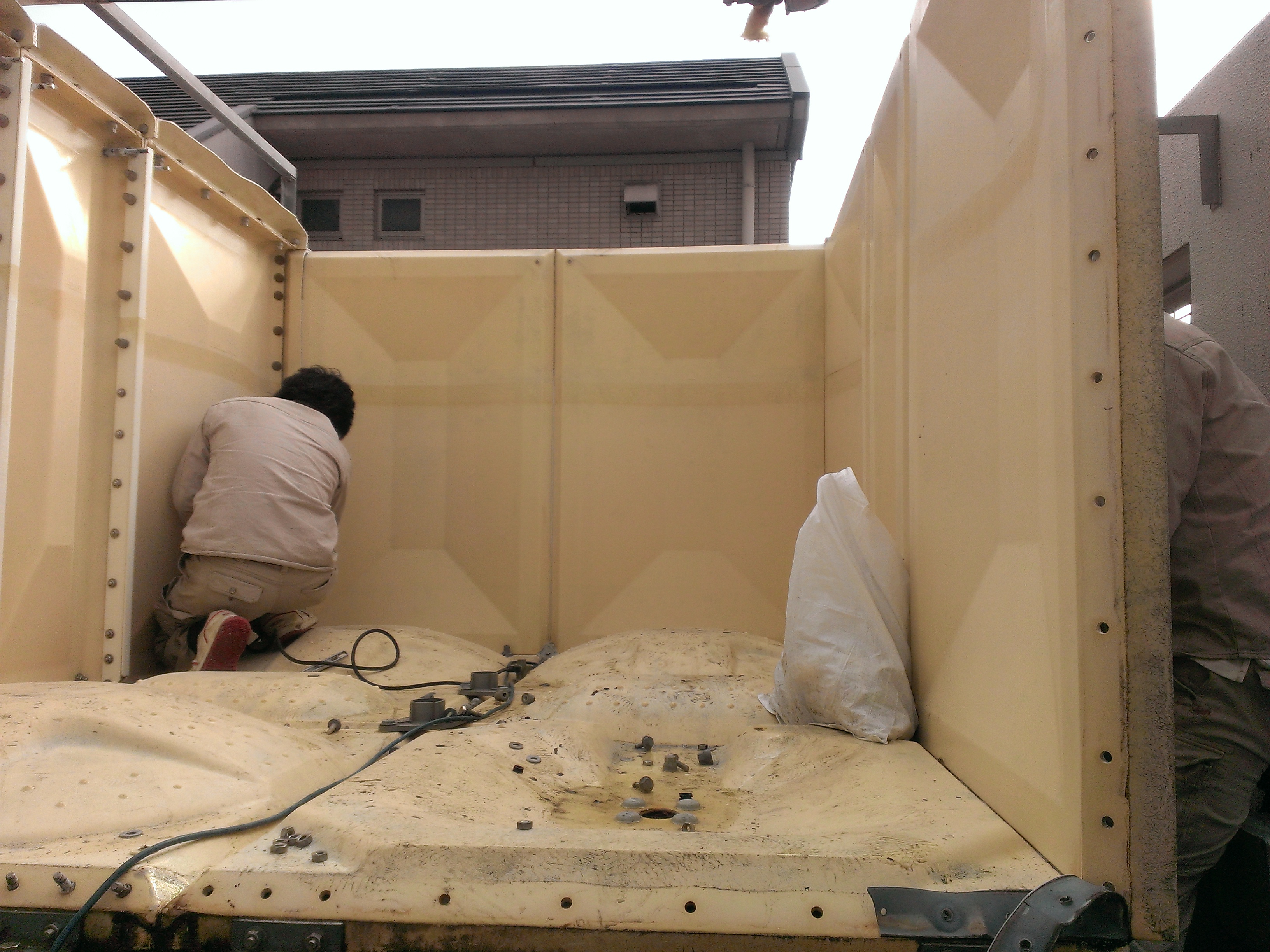 受水槽の更新(取り替え)工事の依頼を頂きました。 2槽式なので、片槽で運用しつつ、片槽の解体撤去を行いました。