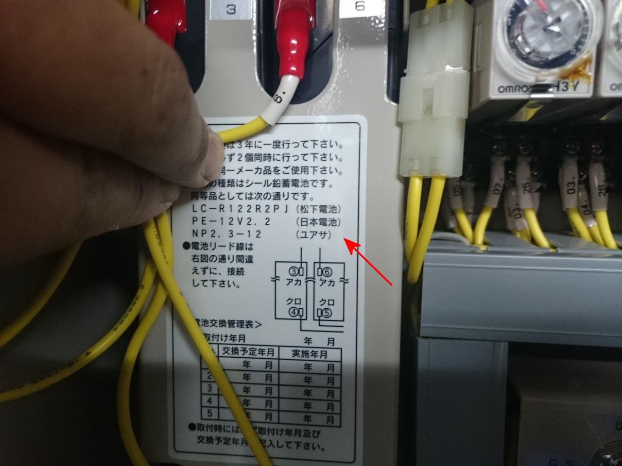 緊急遮断弁操作盤内のバッテリー交換予定日に何の記入もされていない。